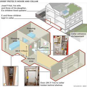 During the 1970s Fritzl began construction of a bunker underneath the family home. Around that time the Cold War was in full swing and the Government encouraged citizens to build their own nuclear shelters. Fritzl was even given a fairly large sum of money towards building costs. Officials approved his plans and he set to work on his bunker. However, the plans were a front for something much darker and more sinister. Fritzl had planned to build the ultimate dungeon, capable of keeping someone restrained with no hint of being discovered.